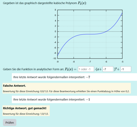 Das POW ist als kontinuierliches, formatives Übungsformat angelegt: regelmäßige kurze Wiederholungseinheiten fördern Dranbleiben, Abruftraining und Fehlerdiagnose. STACK unterstützt dabei besonders durch unmittelbares, objektives Feedback, das nicht nur „richtig/falsch“ abprüft, sondern gezielt an typischen Fehlermustern ansetzen kann. Die Randomisierung stärkt zusätzlich die Eigenständigkeit und macht das Üben fairer, weil alle dieselbe Kompetenz trainieren – aber mit Aufgabenvarianten.
