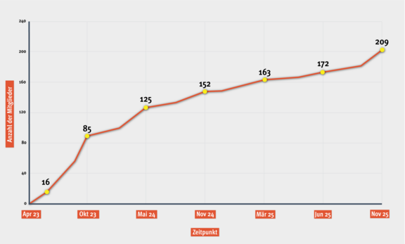 Entwicklung der Mitgliederzahlen des Netzwerks STACK Net